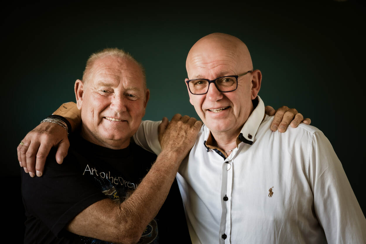 Toen de laatste goedwerkende nier van Frank van Amerongen (58, links) het begaf, was er weinig twijfel bij collega Rob Piersma (60). “Als ik iemand mijn nier moet geven, dan is het aan Frank.”