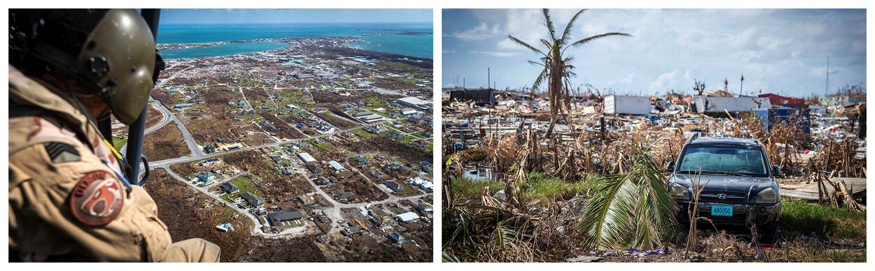 Begin september werd de eilandengroep getroffen door ‘Dorian’. De zwaarste orkaan die de Bahama’s ooit trof, met windsnelheden tot bijna 300 kilometer per uur. Abaco, het eiland ten oosten van Grand Bahama, werd zwaar getroffen door het natuurgeweld. Huizen gereduceerd tot puin, vanaf hun fundering weggevaagd. Het eiland bezaaid met voertuigen, containers en kleine bootjes. Stille getuigen van de megalomane kracht van de natuur.