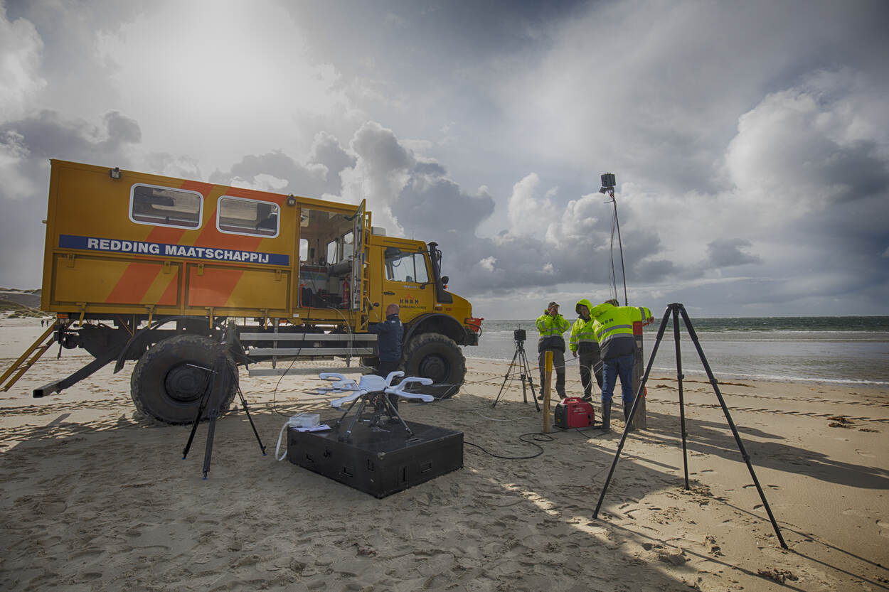 De drone-eenheid ontwikkelt niet alleen voor de marine. Met het pas opgerichte Maritime Drone Initiative Noord-Holland is een civiel-militaire samenwerking aangegaan. 4 weken geleden oefende de club op Terschelling met de KNRM en de Kustwacht. “We hebben het voor elkaar gekregen om een video-livestream over 2,5 kilometer afstand naar het Kustwachtcentrum te sturen, waar iedereen op groot scherm mee kon kijken. De drone is meestal sneller op de plek van een drenkeling dan de reddingsboot. Met de beelden kan de boot naar de drenkeling toe worden ‘gepraat’.” Blom: “We leren er veel van. Vorig jaar was de boot sneller. Dit jaar zijn we speciale search grids gaan vliegen, zodat we ook goed achter de golven kunnen observeren.”