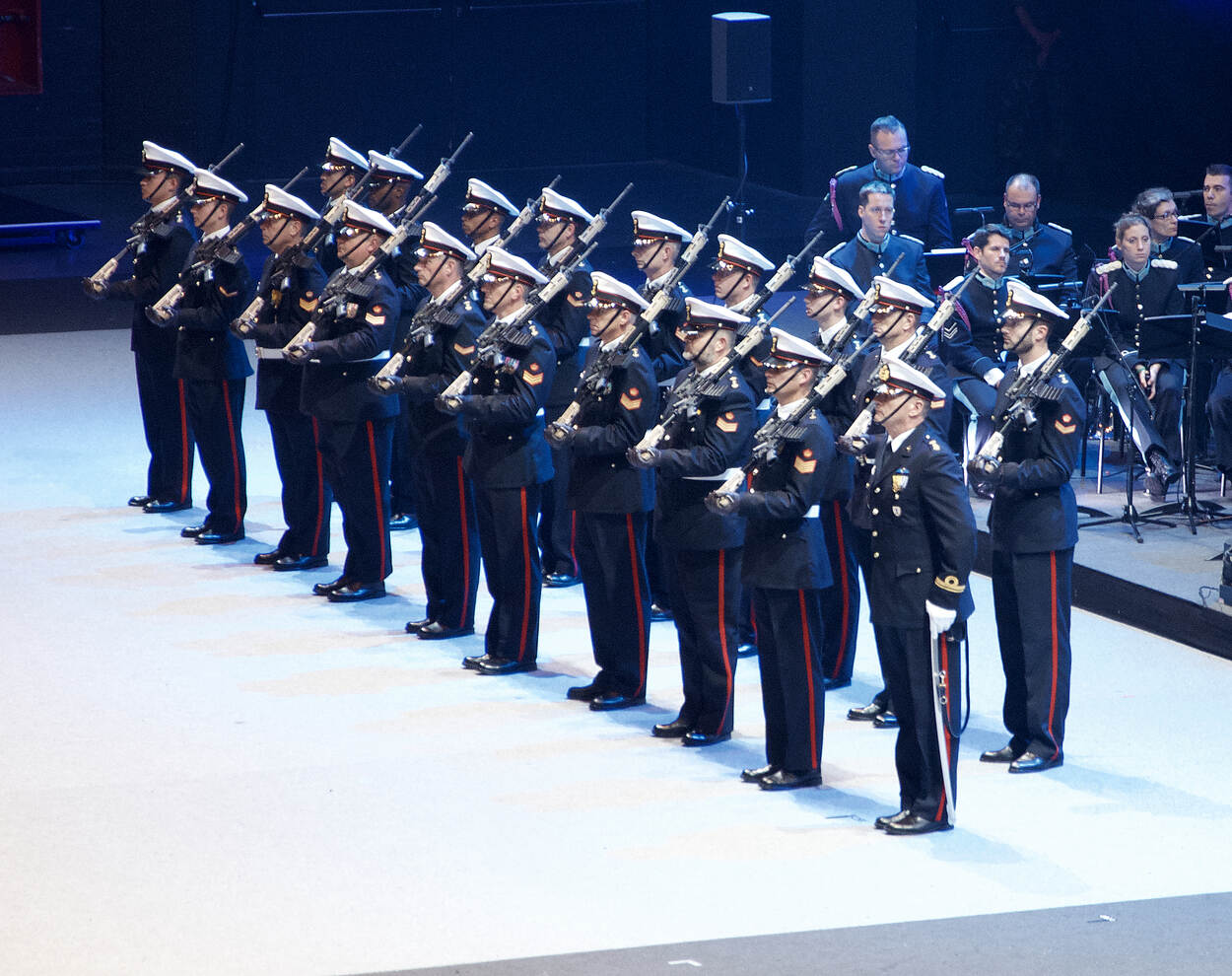 Schoenen gepoetst. Vouw in de broek. Hagelwitte petkap. Stormbandje onder de kin. Handschoenen aan. Witte koppel om de jas. Onderscheidingen van modelformaat. Geweer over de schouder. Elke militair van de Koninklijke Marine weet wat er aan de hand is; een militaire ceremonie. Dat hoort er bij. Door ceremonieel vertoon op Prinsjesdag, bij ontvangsten van staatshoofden, ambassadeurs en bij herdenkingen, laat de krijgsmacht zich van zijn beste kant zien. Het moet alleen allemaal even tussen de rest van de werkzaamheden door gebeuren.