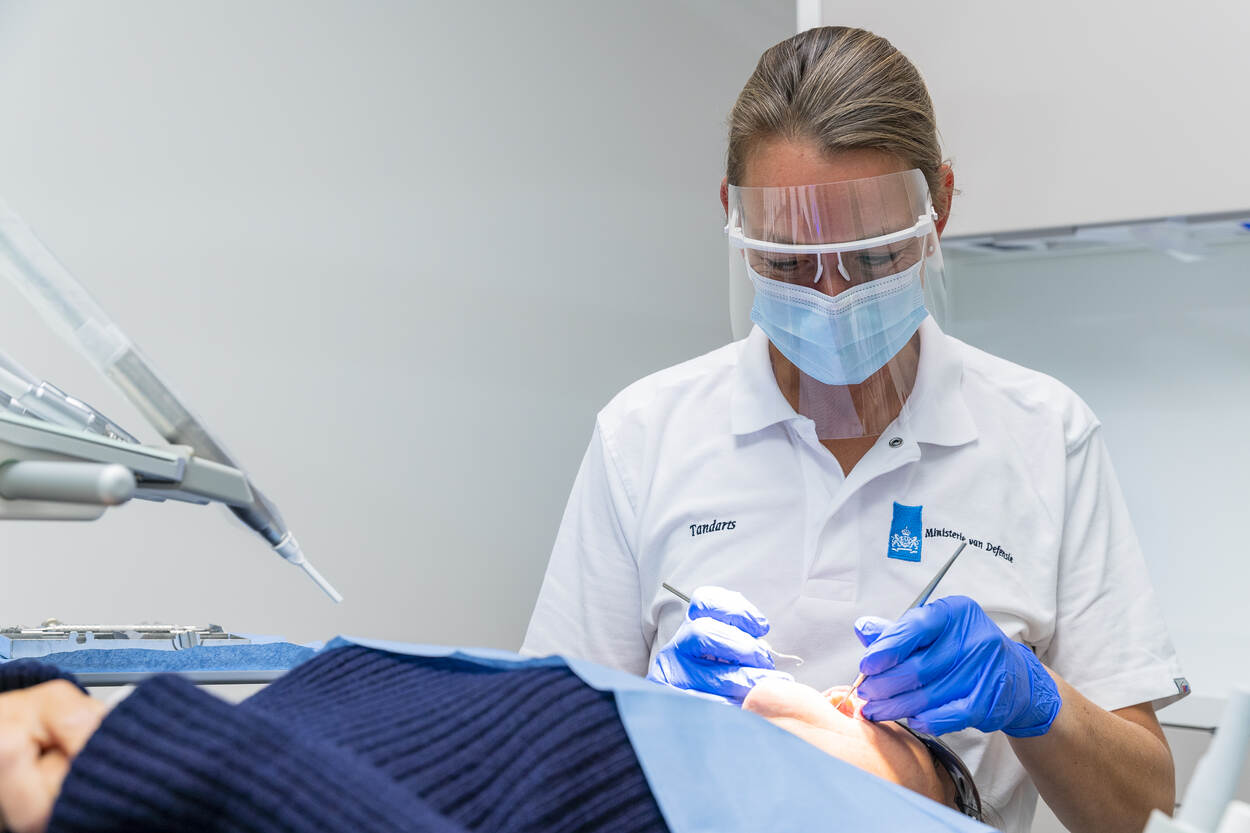 Hoewel ook binnen Defensie tandheelkundig personeel thuis kwam te zitten, werd toch niet gekozen voor het afschalen van de zorg naar alleen strikt noodzakelijke behandelingen. “Dat zit zo”, aldus overste Van Klink. “Militairen moeten dental fit zijn, anders kunnen ze niet op uitzending of op een andere manier ingezet worden. Dat gold ook voor de vele mensen die Defensie civiel uitleende aan de zorg of zich op een andere manier inzetten bij de bestrijding van corona. Daarnaast zijn er nog mensen die vliegmedisch goedgekeurd moeten zijn en anders niet mogen vliegen.”