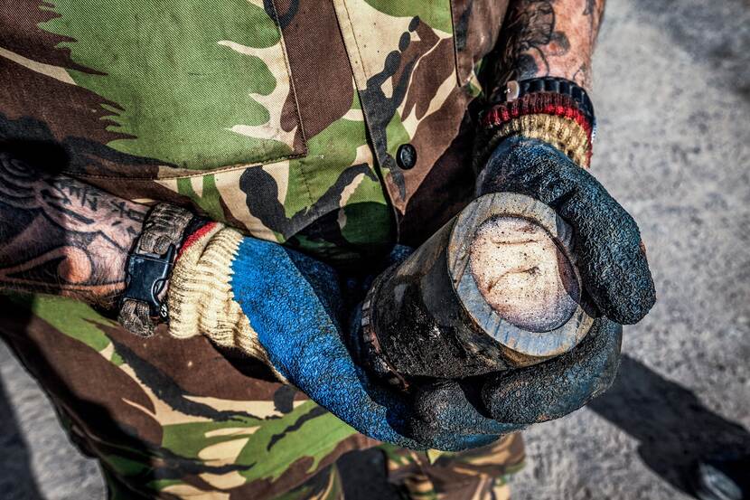 Wat doe je als je er een grote partij munitie op de bodem van de Oosterschelde ligt en je wilt weten hoe dat er na ruim een halve eeuw aan toe is? Eenvoudig: je belt de Explosieven Opruimingsdienst Defensie (EODD) en vraagt de onderwaterspecialisten om exemplaren naar boven te brengen. De explosievenspecialisten op het land mogen het in tweeën snijden om te zien hoe de munitie er van binnen uitziet.