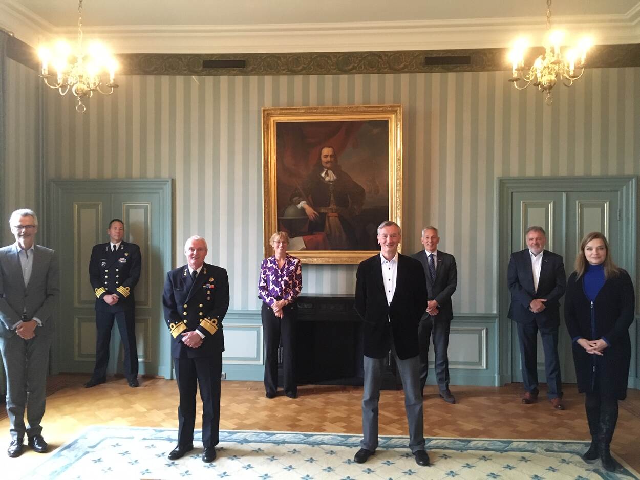 Ter gelegenheid van de overdracht van het voorzitterschap van het Karel Doorman Fonds door SBN b.d. Jacques Brandt aan VADM b.d. Ben Bekkering, ontving Commandant Zeestrijdkrachten VADM Rob Kramer een delegatie van het bestuur voor een afscheidslunch. Al 75 jaar biedt het fonds financiële steun aan (oud-)marinemensen en hun families die, om wat voor reden dan ook, sociale of financiële steun nodig hebben. Dit kan individuele steun zijn, maar ook steun voor herdenkingen of activiteiten voor zorg en welzijn van marine-veteranen en actief-dienenden. Bij zijn afscheid riep vertrekkende voorzitter Brandt op extra attent te blijven op het sociale isolement waar veel veteranen door de coronamaatregelen in verkeren: “Veteranen-ontmoetingscentra zijn gesloten, buddies zien elkaar minder; ik bemerk terughoudendheid om hulp te zoeken. Laten we daarom elkaar in de gaten houden en een hart onder de riem steken. Een klein gebaar, een kaartje of belletje kan een dag al goedmaken.” Meer informatie: https://www.kareldoormanfonds.nl.