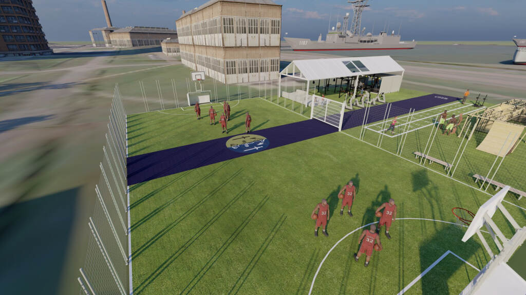 Op het terrein van de Nieuwe Haven in Den Helder is de bouw van een multifunctioneel sportveld uit de startblokken geschoten. Begin december onthulde Commandant Zeestrijdkrachten (C-ZSK) vice-admiraal Rob Kramer het bouwbord en stak de 1e schep in de grond. Als alles volgens plan verloopt, is het court eind maart 2021 klaar.