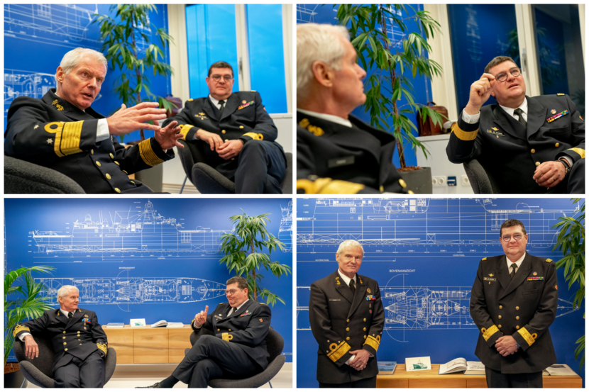 De sfeer is amicaal en al snel wordt duidelijk dat de admiraals meer dan collega’s zijn. Als jonge officieren dronken ze in 1990 al samen een biertje. De Beurme: “We kennen elkaar al meer dan 30 jaar. We zaten samen in de opleiding tot Commandocentrale Officier (CCO). En daarna liepen onze carrières nagenoeg synchroon. We werkten zelfs samen in een eskader. We kunnen wel zeggen dat we elkaar door en door kennen.”