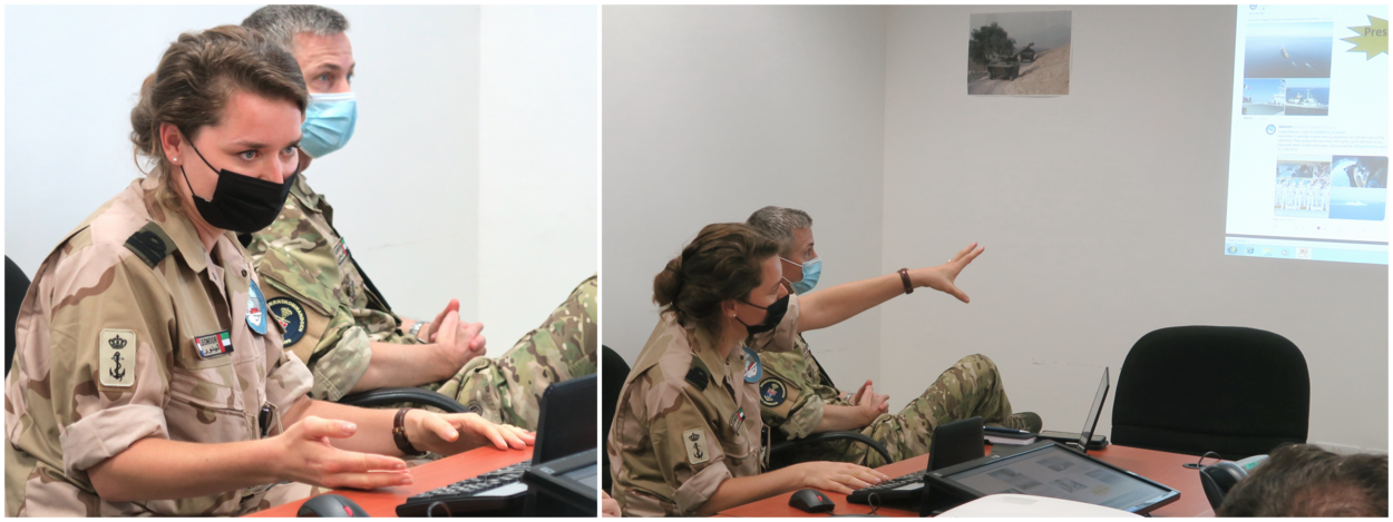 Naast stratcom-adviseur is Leonoor ook public affairs officer. “In principe vloeien de 2 taken in elkaar over. Doordeweeks probeer ik EMASOH op de kaart te zetten, voor onze doelgroepen in de 8 deelnemende landen aan de missie. Ook is het belangrijk om de media en de keyplayers in de regio, plus hun achterban, op de hoogte te houden. Dit doe ik bijvoorbeeld door middel van briefings, informatiebulletins, persberichten en nieuwsitems op onze social media.”
