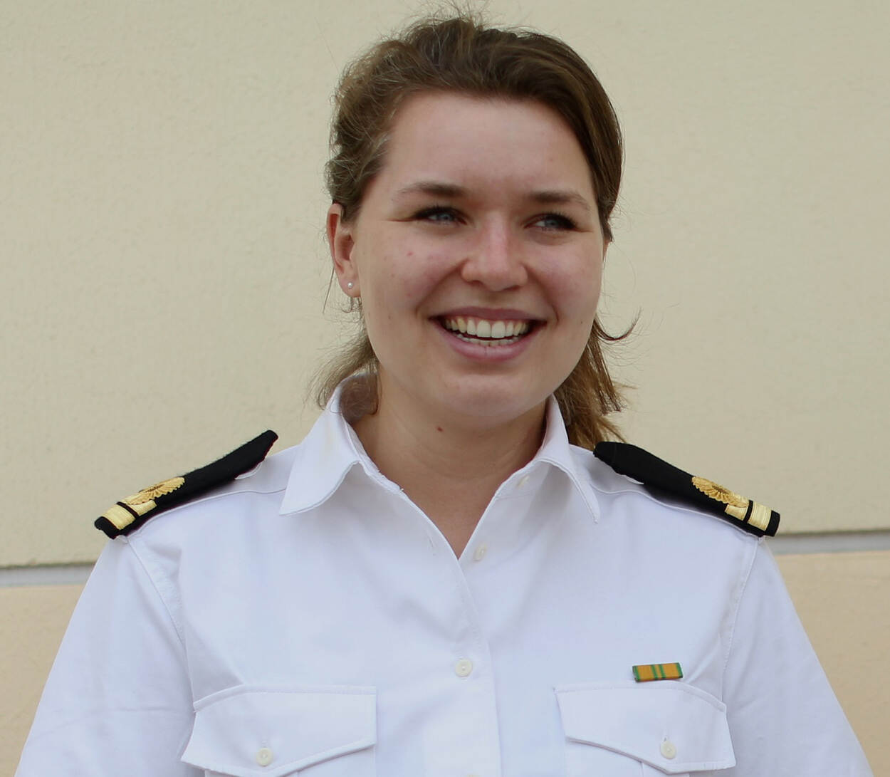 Leonoor kwam in 2019 als beroepsmilitair onder de wapenen, na haar bachelor Economie & Bestuurskunde in Leiden en een master Bedrijfscommunicatie aan de Amsterdamse VU. Haar belangstelling voor de KM werd eerder al gewekt tijdens het werkstudentschap Defensity College, waarvoor zij al reservemilitair was geworden in 2016. “Ik koos voor de marine vanwege het leven op zee, de verhalen, de geschiedenis, de tradities en de waarden, maar ook wel een beetje voor het avontuur.”