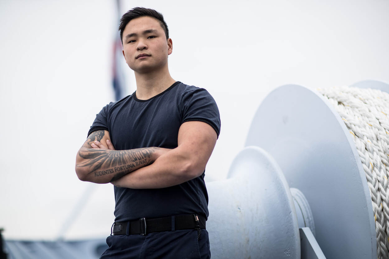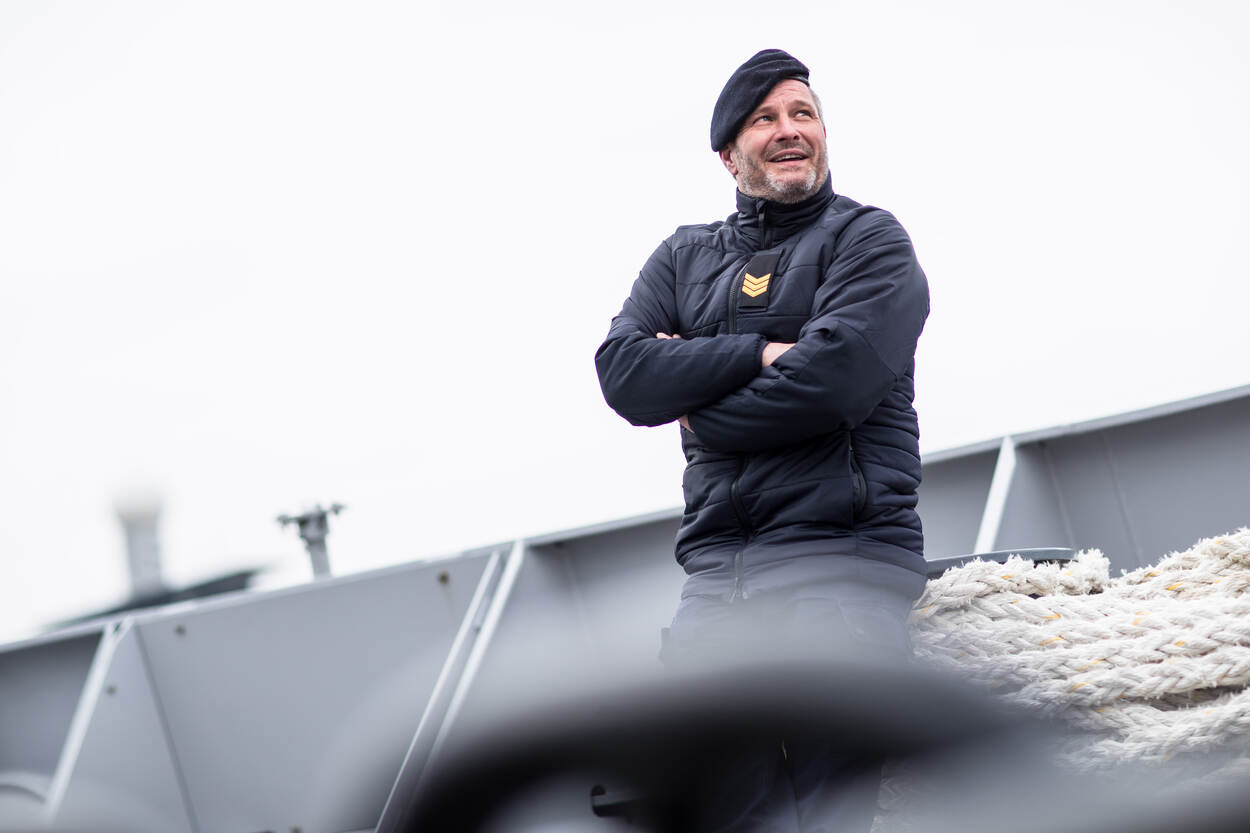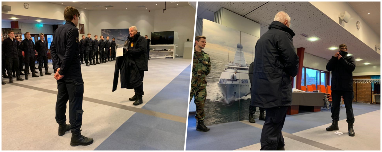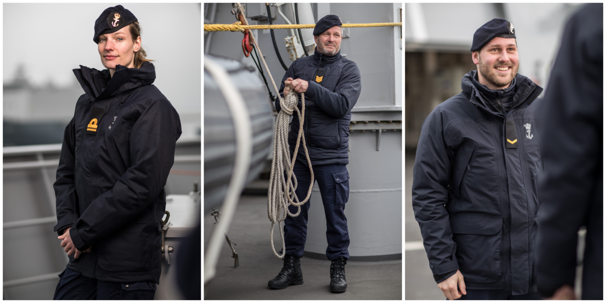 De nieuwe jas, met bijpassende regenbroek, is dan ook bestemd voor al het vlootpersoneel. Het boordtenue is namelijk nog altijd het meest gedragen uniform op schepen en op Marinebasis Den Helder. Uit 3 verschillende combinaties werden deze jas en broek na een draagproef als winnaar gekozen. “Collega’s waren te spreken over het materiaal: het is waterdicht, maar ademt wel, waardoor je niet snel transpireert.”
