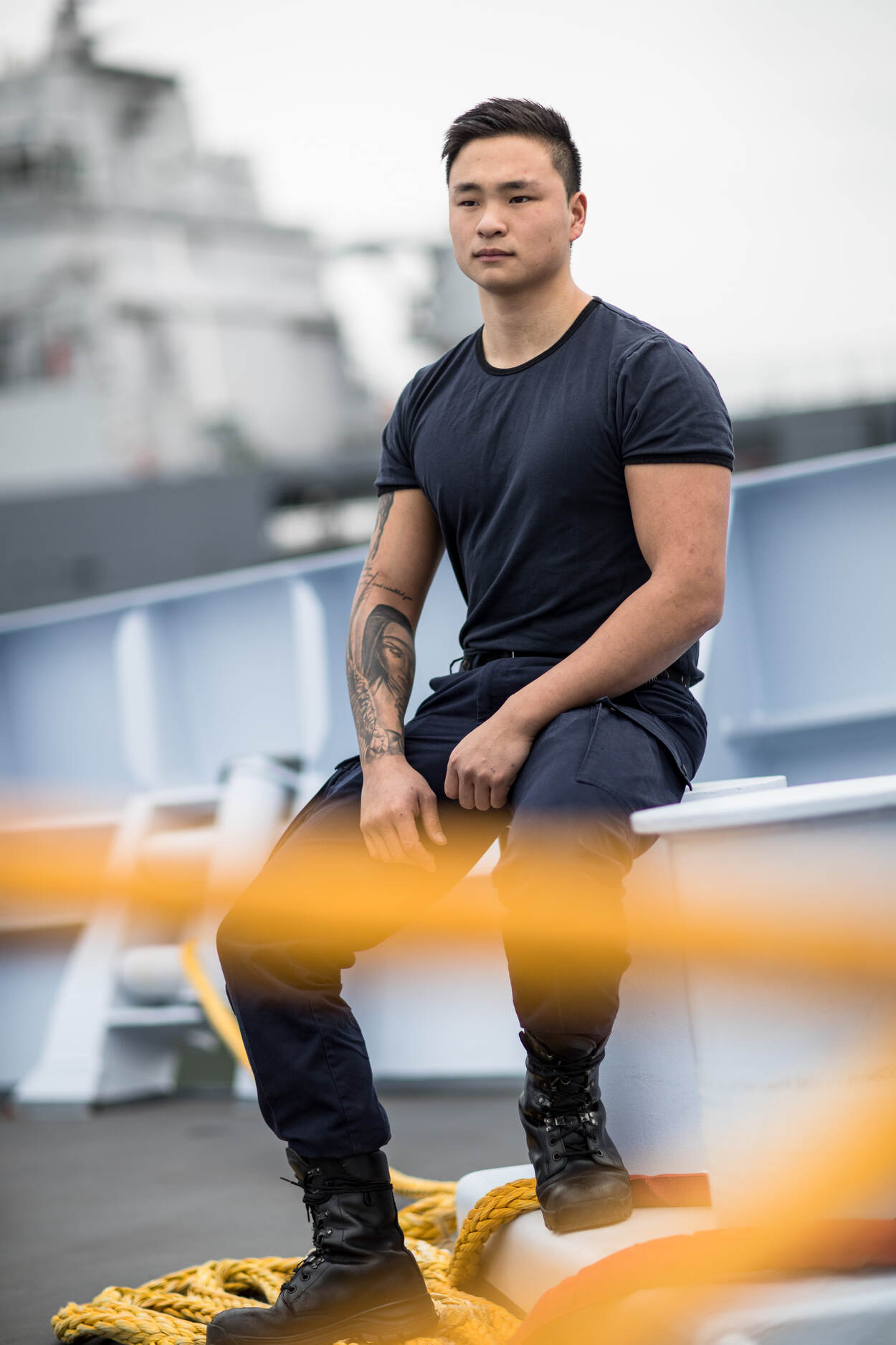 Door de 3-in-1-constructie kan de marine-militair de jas op 3 verschillende manieren dragen: alleen de binnenvoering als ‘wolletje’ of deze voering vastgeklikt aan de jas, als warmste versie, of alleen de buitenste dunne jas, als regenjas. “Of het nu regent, waait of je moet lang stilstaan, er is altijd een prettige manier om de jas te dragen.”
