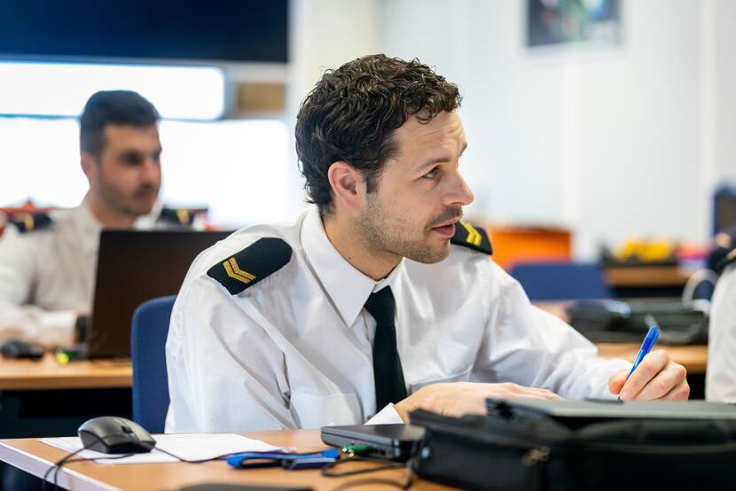 Dat laatste klinkt goed, in het Engels. Een taal die vaker uitkomst zou kunnen bieden, merkt Ramboer op. “Gezamenlijk onderwijs van Nederlanders, Vlamingen en Walen is een uitdaging. Of je zou de Engelse taal moeten gebruiken. Uiteindelijk werken we toch op hetzelfde schip. Zeker in noodsituaties moeten taalverschillen niet voor verwarring zorgen. Om dat op te lossen, werken we nu aan een virtual classroom. Dat er bijvoorbeeld in het Nederlands les wordt gegeven, maar dat dat simultaan naar het Frans wordt vertaald en andersom. Ook voor de opleidingen van de Koninklijke Marine Technische Opleidingen (KMTO) in Den Helder zou dat uitkomst bieden. De Franstalige leerlingen moeten zich nu nog behelpen met Franse handleidingen.”
