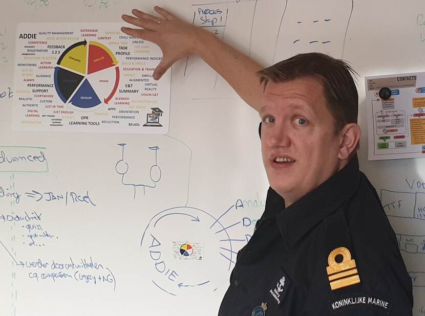 De Belgische kapitein ter zee stafbrevethouder Peter Ramboer is directeur van de Navy Academy (NAC). In feite is dit de overkoepeling van Belgische marinescholen en binationale onderwijsinstituten. “Binnen de NAC proberen we om de nieuwe filosofie te laten opbloeien, ook binnen de Belgisch-Nederlandse opleidingen. De filosofie luidt: alles begint met wat een marine moet creëren en leveren, zoals veiligheid op zee, parate eenheden op de wal, voorbereidingscapaciteit en ondersteuning. De NAC moet ervoor zorgen dat onze mensen de juiste kennis en kunde opdoen, via verschillende pedagogische technieken, blended learning genaamd. Dan leer je tijdens oriëntatiefases in theorie, via simulatie en in het werkveld. Daar houd je die kennis vervolgens vast, maar doe je ook nieuwe praktijkkennis en -ervaring op.”