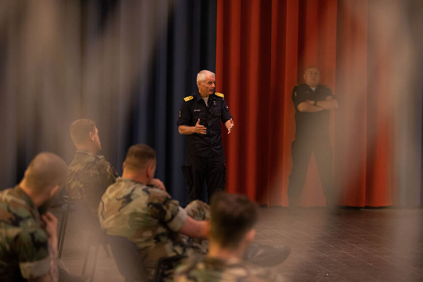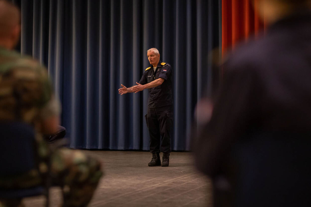 Kramer sprak zijn waarschuwende woorden maandag bij het Mariniers Opleidingscentrum op de Van Ghentkazerne in Rotterdam. Hier streek hij neer met zijn Roadshow, een initiatief om personeel in coronatijd op de hoogte te stellen van wat er speelt bij het varende krijgsmachtdeel. Vaste sidekick is Chef d’ Equipage CZSK adjudant TD Jack Gouda. Het tweetal heeft al een aantal sessies bij de marine-etablissementen achter de rug.
