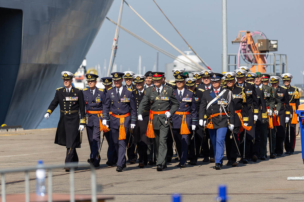 Uiteraard kwam ook vice-admiraal Tas aan het woord om zijn voorganger te danken en zijn intenties uiteen te zetten. Dat deed de nieuwe vlootvoogd later die dag ook in een klassieke Dagorder, gericht aan het voltallige personeel. Zijn prioriteiten: ‘Onze missie, de mens en het thuisfront’. “Onze missie is bijdragen aan veiligheid op en vanuit zee. Van ons wordt verwacht dat we gereed zijn voor de uitvoering van onze nationale en bondgenootschappelijke taken. Dit betekent onder andere bijdragen aan een geloofwaardige afschrikking. Waar deze niet voldoende is: gereed zijn voor het gevecht en het gevecht winnen, met vloot en marinierseenheden, in een joint en bondgenootschappelijk verband.”
