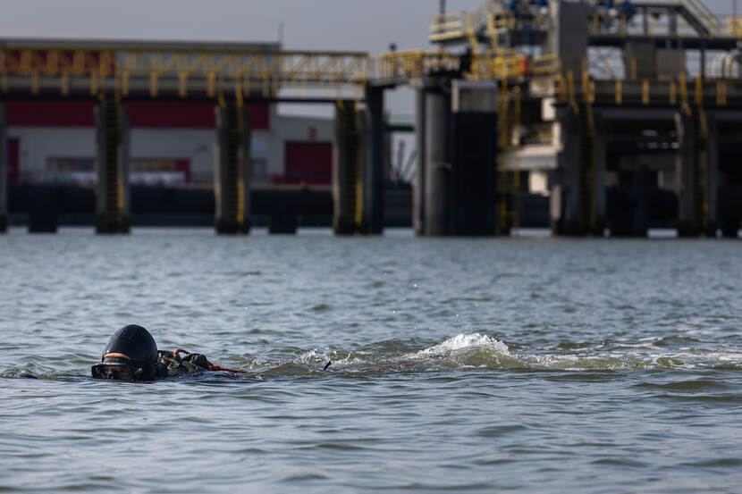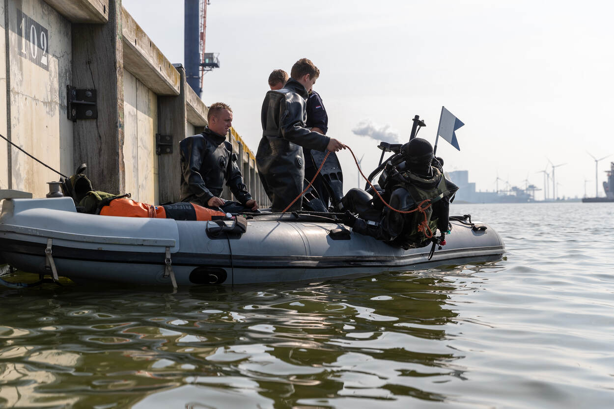 Opmerkelijk is verder dat in Eemshaven op bescheiden schaal onderwater explosieven gebruikt mogen worden, wat in de buurt van kades en installaties vrij ongebruikelijk is. Uiteraard worden wel de nodige voorzorgsmaatregelen getroffen. Om het zeeleven zoveel mogelijk te ontzien, ontsteekt men eerst enkele scare charges om dieren te verjagen. De daarop volgende echte klap van een pondje springstof voel je tot diep in je maag. “Deze lading is voldoende het roer van een schip onklaar te maken”, aldus duikmeester en ploegleider EOD sergeant-majoor Toine.