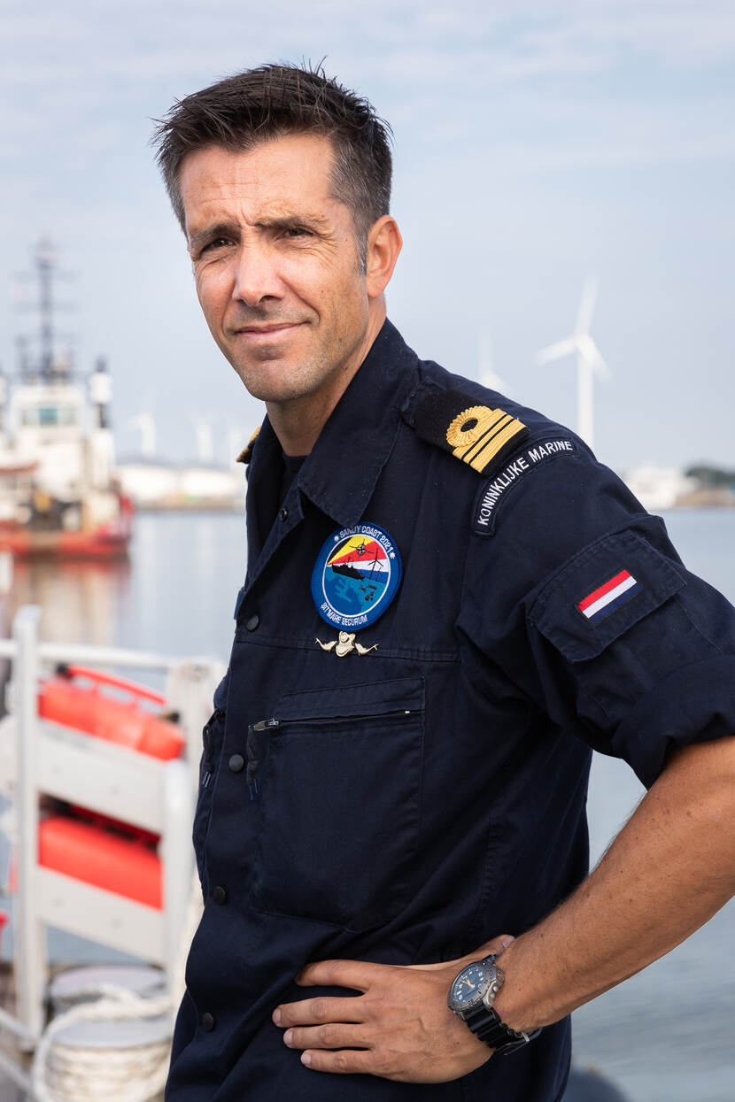 Projectofficier van de havenbeschermingsweek luitenant ter zee 1 René Pouw heeft de uitdaging die Eemshaven hem biedt helder op het netvlies staan. Waar vergelijkbare oefeningen, zoals in Rotterdam, zich afspelen in een klein, afgebakend gebied, heeft de marine bij Sandy Coast een groot deel van Eemshaven in gebruik. Zo is een Amerikaans explosievenopruimingsteam onder leiding van lieutenant Bridgette Barden op een kade bezig met een EOD-verkenningsrobot. Franse duikers ontfermen zich enkele kilometers verderop onder water over het geïmproviseerde springtuig bij de roll on/roll off terminal. “We hebben hier wel de handen vol”, constateert Pouw. “Want hoe houd je continu alle op ondermijning gecontroleerde kademuren, schepen en andere objecten onder waarneming? Hiervoor heb je beveiligingsteams nodig, maar die doen nu niet mee.’
