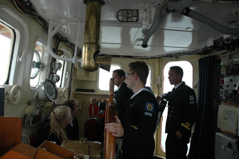 Om zeekadetten zoveel mogelijk aspecten van het maritieme beroep mee te geven, maken ze geregeld uitstapjes naar onder meer bedrijven en de nautische leerscholen, waar ze kennis maken met simulatoren, een brandje blussen of met reddingsmiddelen in het water springen. Op Marinebasis Den Helder staat natuurlijk de KM centraal. Nu corona op een iets lager pitje staat, zijn scheepsbezoeken weer toegestaan. Zo was een delegatie onlangs te gast op de mijnenjager Zr.Ms. Schiedam.