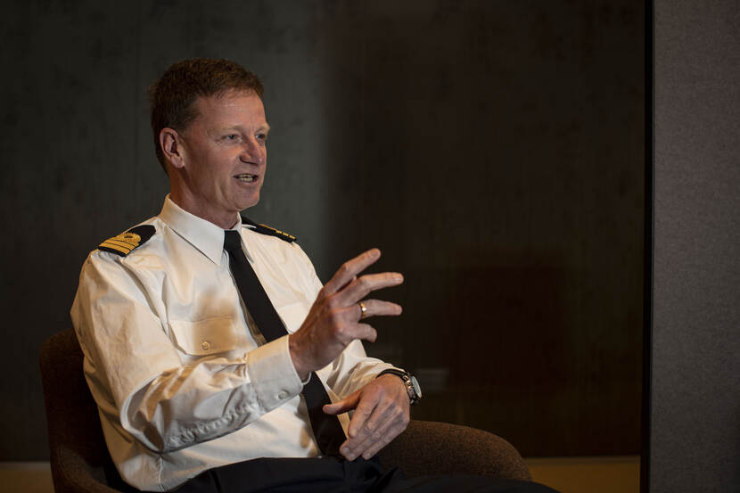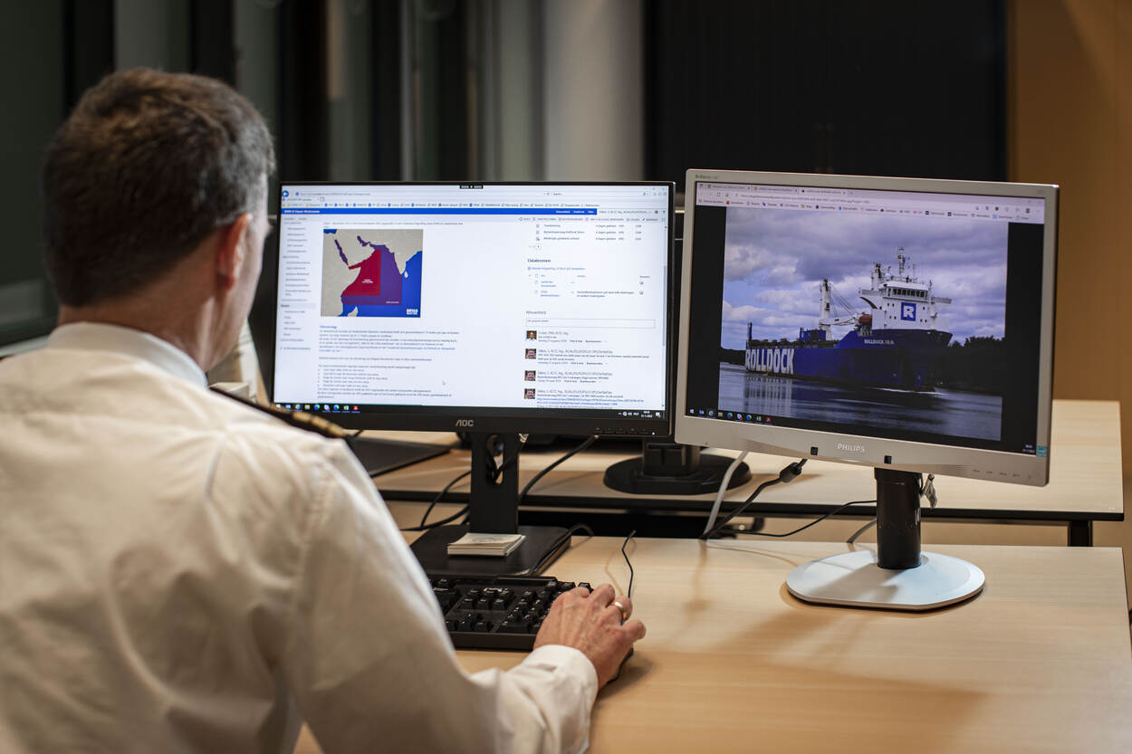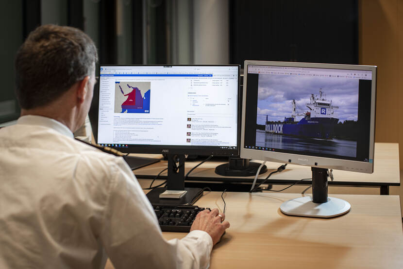Kapitein-luitenant ter zee Simon Sikkes is Maritime Industry Liaison Officer en desk officer van de Directie Operaties (DOPS) van de Bestuursstaf in Den Haag. Vanuit zijn functie heeft hij contact met de Koninklijke Vereniging van Nederlandse Reders, de verzekeraars en de maritieme industrie. “Met andere mensen uit de sector maak ik bijvoorbeeld deel uit van de expertgroep die de brandhaarden in de wereld in de gaten houdt. De Nederlands gevlagde scheepvaart kunnen we dan, wanneer nodig, waarschuwen voor risico’s of zelfs aanraden om havens of zeegebieden te verlaten.”