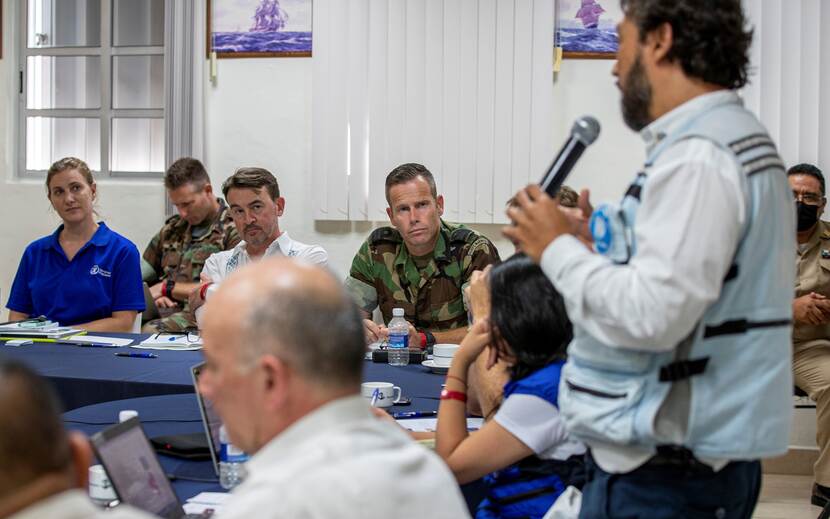 Timo vertelt dat de focus voor Nederland tijdens oefening vooral ligt bij Human Assistance & Disaster Relief (HADR). Militairen assisteren in de eerste periode na de passage van een orkaan (of andere ramp) de lokale overheden met het verlenen van primaire noodhulp. “Civiele partijen gebruiken die tijd om zich voor te bereiden op het voortzetten van de hulpverlening”, licht medewerker bij de N9 (Civiel-Militaire Samenwerking) luitenant ter zee 2 Paul Vogelaar toe.