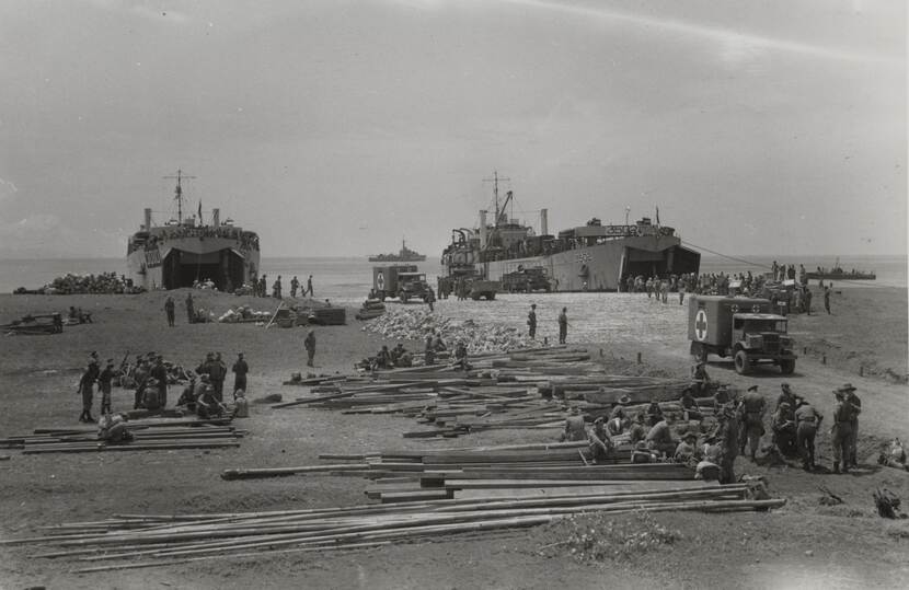 Ook Leever-senior landde daar in 1944, maar had toen al heel veel actie gezien. De marinier voer mee aan boord van Hr.Ms. Flores, een marineschip dat op 17 mei 1940 wist te ontkomen naar Engeland. De kanonneerboot was met zusterschip Soemba (bekend als ‘The Terrible Twins’) later bijvoorbeeld betrokken bij gevechtsacties in de Middellandse Zee bij Sicilië (Operatie Husky, bij Sicilië). Leever ontving voor zijn heldhaftige optreden tijdens die operatie het Bronzen Kruis. (https://www.defensie.nl/onderwerpen/onderscheidingen/bronzen-kruis). De Twins waren overigens ook op D-Day actief.