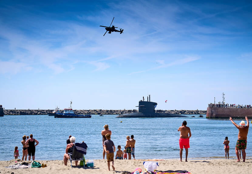“Eigenlijk komen we niet vaak in andere Nederlandse havens dan Den Helder. Hier binnenvaren vergde overigens wel goede voorbereidingen, want de haven van Scheveningen is een stuk smaller en minder diep dan de meeste havens waar we afmeren. Het was nog extra lastig omdat we elkaar door de Apache-gevechtshelikopter boven ons hoofd nauwelijks konden verstaan. Maar wel erg gaaf dat we dit evenement samen met de luchtmacht konden uitvoeren.”
