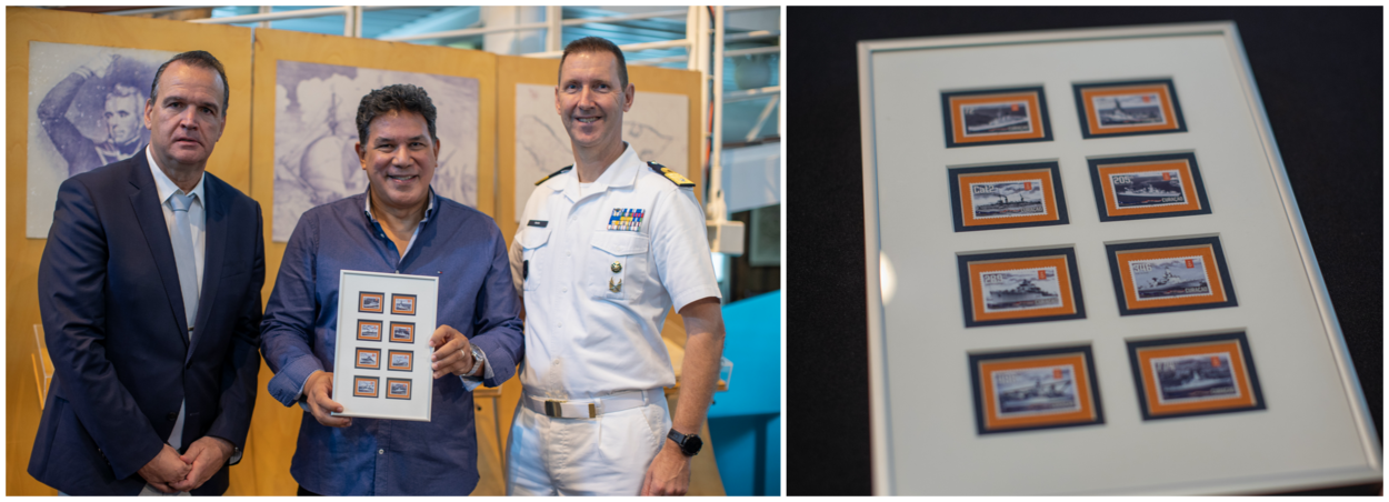 Commandant der Zeemacht in het Caribisch Gebied brigadegeneraal der mariniers Frank Boots heeft onlangs een serie postzegels in ontvangst genomen met daarop 8 marineschepen. CEO Thomas Roggendorf van C-Post overhandigde de speciale uitgave aan de generaal in het vernieuwde Maritiem Museum in Willemstad. Boots noemde de emissie van de Curaçaose post een ‘bijzonder eerbetoon’. “De mensen en de middelen zijn dan wel veranderd, het doel waarom we hier zijn is nog steeds hetzelfde. Defensie in het Caribisch gebied levert veiligheid in deze regio.”