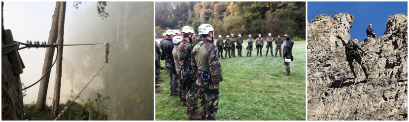Optreden als opposing forces voor de Marine Combat Group op bergtraining in Noorwegen, dat was het perspectief. Toen de 40 reservisten van de Koninklijke Marine Reserve Operationele Eenheden Mariniers (KMR OPE MARNS) daar toch niet voor nodig bleken, besloten zij om de voorbereidende training van een week toch grotendeels door te zetten. Zij waren onlangs te vinden in het ruige terrein rond het Belgische Marche les Dames, de thuisbasis van de Belgische commando’s in de Ardennen. Op het menu stonden klimmen, abseilen, tokkelen, marsen, hindernissen nemen, rivercrossings uitvoeren, peddelen per rubberboot, volledig omgehangen verplaatsen bij duisternis en een oriëntatiecross met kaart en kompas. Een van de hoogtepunten vormde een lange Klettersteig, bestaande uit klim- en klauterwerk, een tokkelbaan, touwladders en -bruggen, een indianenbrug en een evenwichtsbalk.