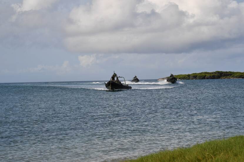Amerikaanse, Franse, Nederlandse en Arubaanse militairen kwamen vorige maand volop in actie tijdens de oefening Très Kolos op Aruba. Aan de tweejaarlijkse oefening rond Marinierskazerne Savaneta deden zo’n 200 militairen mee. 8 dagen lang voerden de mannen van Marine Squadron Carib, de Compagnie in de West van de KL, 2nd Recon USMC (VS), 33 RIMA (Frankrijk), Bootgroep Carib, Detachement St. Maarten en Arubaanse miliciens een diversiteit aan sportieve en militaire activiteiten uit. Een en ander stond in het teken van samenwerking, integratie en gezonde competitie.