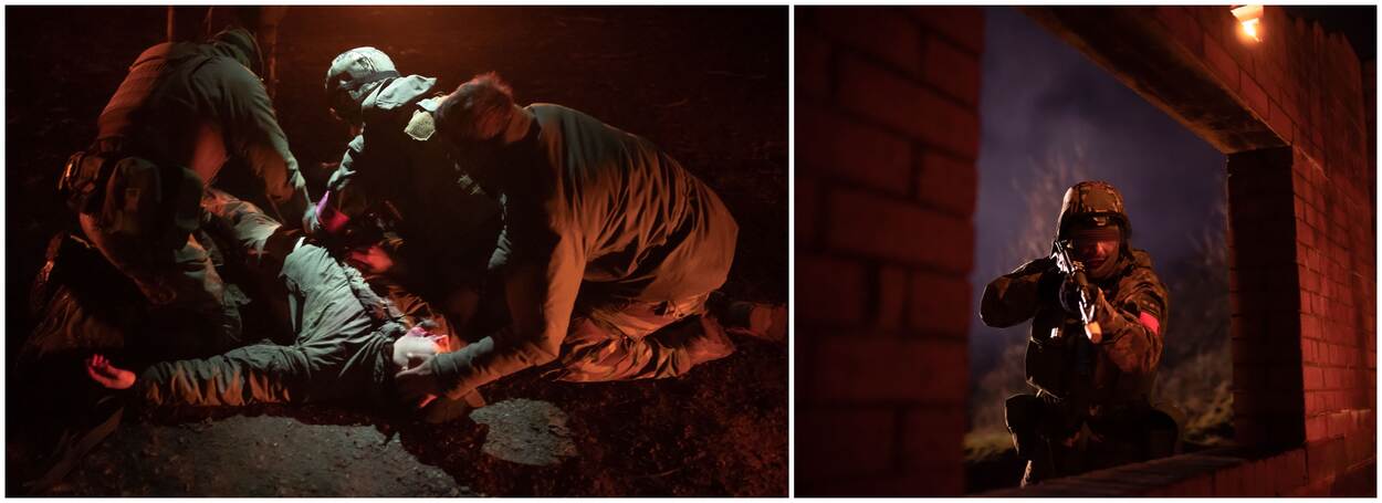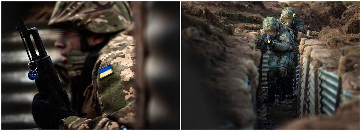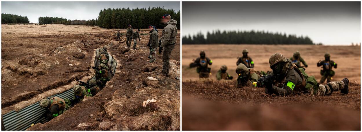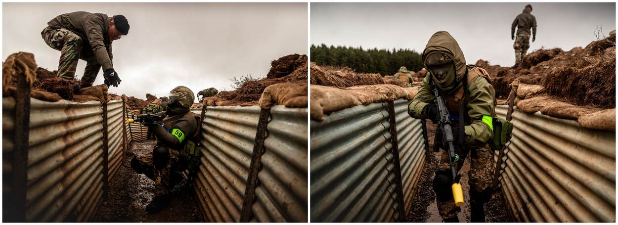 Een eerste knal, gevolgd door meer indirect fire. Laag blijven is het devies. Gebukt rennen de Oekraïense trainees door de loopgraven in het noorden van Groot-Brittannië. Onder het toeziend oog van de Nederlandse mariniers, die hen minutieus door het gangenstelsel dirigeren. “Sneller! Go, go, go!”, klinkt het, waarna de tolk de woorden in het Oekraïens op even luide toon herhaalt. De rekruten aarzelen geen seconde en spurten vooruit. Eén ding is zeker: hier is het een oefening, over enkele weken is het werkelijkheid.