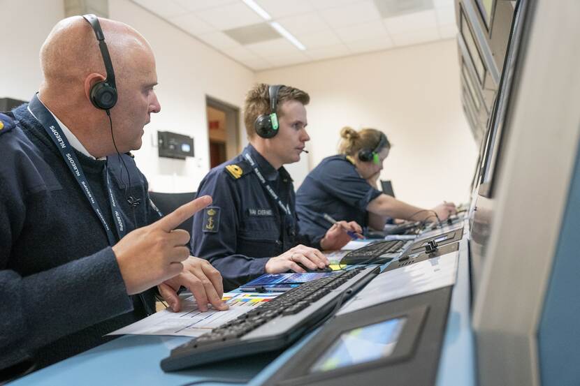 De cursist die daaraan behoefte heeft, kan een beroep doen op de in de opleiding meelopende maritiem-psycholoog. ‘Wat gaat goed, wat kan beter?’. “Hij helpt de cursisten om in het juiste spoor te blijven. Sinds hij er is, ligt het slagingspercentage hoger, wat niet wegneemt dat er ook afvallers zijn. Op een aantal van 20 á 24 cursisten gemiddeld 3. Soms ligt het werk iemand minder goed of beschikt hij over nog onvoldoende operationele ervaring. Of hij of zij vindt het lastig om een team aan te sturen. Een commandocentrale-officier moet de leden van het team namelijk wel, vooral onder lastige omstandigheden, min of meer de duimschroeven kunnen aandraaien. Ofwel: effectief en efficiënt inzetten om de missie te volbrengen. Afvallers krijgen een herkansing of trekken de stekker er zelf uit en kiezen voor een andere richting binnen de organisatie. Met de ervaring die ze bij ons opdoen, zijn ze ook ergens anders prima inzetbaar”, vertelt Glaser.
