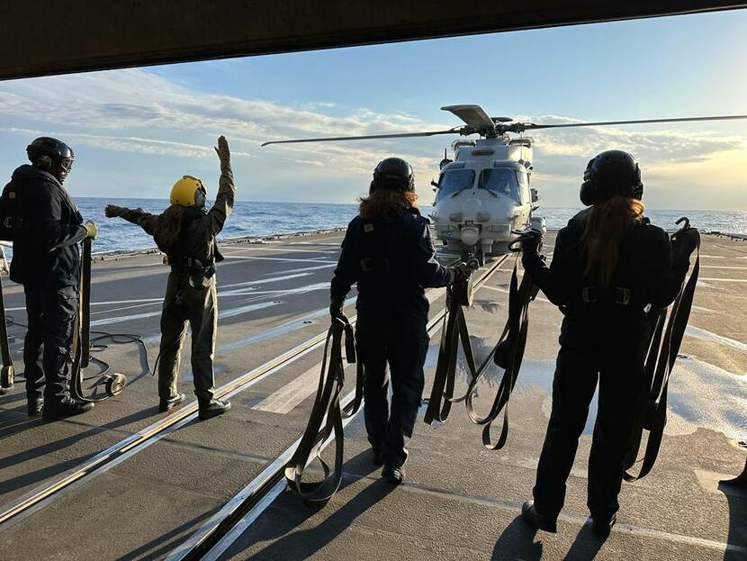 “De spelregels waren zo dat een ‘uitgeschakelde’ eenheid niet meer mee mocht doen. We zijn in staat geweest om de carrier te beschermen en zijn, hoewel we echt wel risico’s namen, zelf niet onder vuur genomen. Uiteindelijk hebben we zelfs nog enkele dagen als shot gun geopereerd, nabij de carrier. Mooi om dan van dichtbij de starts en landingen van hun Rafale-gevechtsvliegtuigen te kunnen zien. De rol van shot gun wordt door de Fransen overigens niet zo snel gegeven aan niet-Franse eenheden. Dat wij die taak wel kregen, zie ik als een groot compliment aan het team van ‘De Zeven’. Die Franse opstelling verdient lof: zij hebben ons het vertrouwen gegeven en wij hebben de kans gegrepen. Prachtig!”