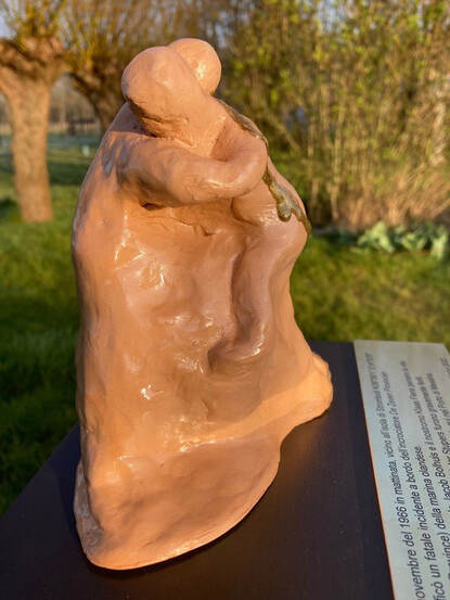 René maakte thuis een beeldje dat een vader voorstelt die zijn jonge zoon vasthoudt. Aan de voet van het beeldje bevestigde hij een koperen plaatje met uitleg in het Italiaans. Christiana Laurà regelde een ontvangst op het havenkantoor, waar René het beeldje kon aanbieden aan de directie. Vervolgens was er een officieel moment aan de waterkant. Naast een vertegenwoordiger van de Italiaanse marine en een journalist stonden diverse autoriteiten van het havenbedrijf en de Italiaanse kustwacht op de kade. In de lucht maakte een marine-helikopter een fly-by, waarna René een tekst voorlas. Die droeg hij op aan zijn vader, maar ook aan de andere slachtoffers, hun naasten en de bemanning. “De ceremonie gaf mij veel troost en voldoening. En de inzet van het Bureau Casemanagement en Christiana Laurà bleken daarbij van onschatbare waarde. Zonder hen was ik nooit zover gekomen.”
