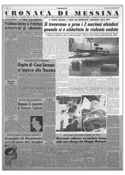 Op een gegeven moment opperde Wilfred een bezoek aan Messina te brengen. Daar waar overste Bolhuis destijds aan land was gebracht. “Jij hebt daar nog werk te verzetten”, zei hij. Met instemming van Case Management zocht René voorafgaand aan zijn bezoek contact met de lokale havenautoriteiten, met de vraag of zij nog informatie hadden over het ongeval in ’66 en de aan landbezorging van de slachtoffers. Voorlichter Christiana Laurà stuurde een paginagroot artikel dat destijds in de lokale krant was verschenen. Het raakte René zo dat hij Christiana wilde gaan bedanken. “Haar empathie was hartverwarmend.”