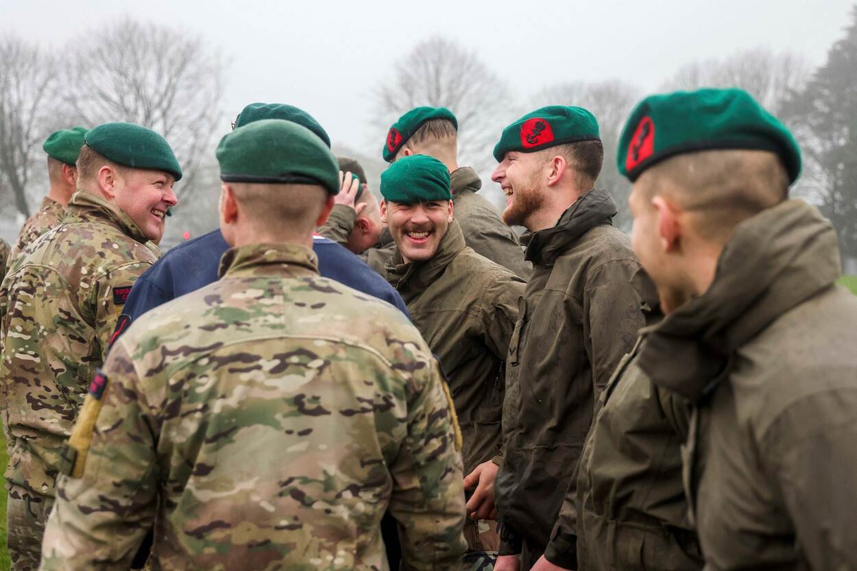 Na deze ontberingen kwamen David en zijn makkers op hun wenkbrauwen de kazerne in Lympstone weer binnen. En daar stonden ze dan; eigenlijk te uitgeput om de vreugde te kunnen voelen, rond het behalen van de eindstreep. “De euforie was groot, maar de vermoeidheid nog groter”, bekent David, die het zeer waardeerde dat ook een ruim bemeten Nederlands ontvangstcomité naar Lympstone was getogen. “Dat had natuurlijk veel te maken met het 50-jarig bestaan van de United Kingdom-Netherlands Amphibious Force, dit jaar.” Ten overstaan van allen ontvingen David, 5 collega-mariniers, 14 Britten en niet te vergeten de dappere Tsjech hun groene baret. Dat de mannen, nota bene in Engeland, zich na de ceremonie beperkten tot het nuttigen van slechts 1 biertje de man, zegt alles over de mate waarin zij waren afgemat.