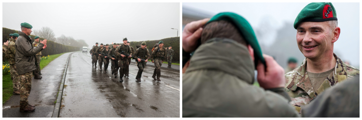 Luitenant-kolonel der mariniers Oscar van der Veen, stafofficier bij het NATO Allied Maritime Command (Northwood, VK), reikte de groene baretten (met rood padje en zwart anker*) uit aan de Nederlandse geslaagden. "Het was 23 jaar geleden dat ik zelf mijn groene baret kreeg", sprak Van der Veen bij deze gelegenheid, "maar het moment is hetzelfde voor deze jonge mariniers. Je kunt het in hun ogen zien; je kunt de pijn zien, maar ook de trots die ze voelen voor hun prestaties.”