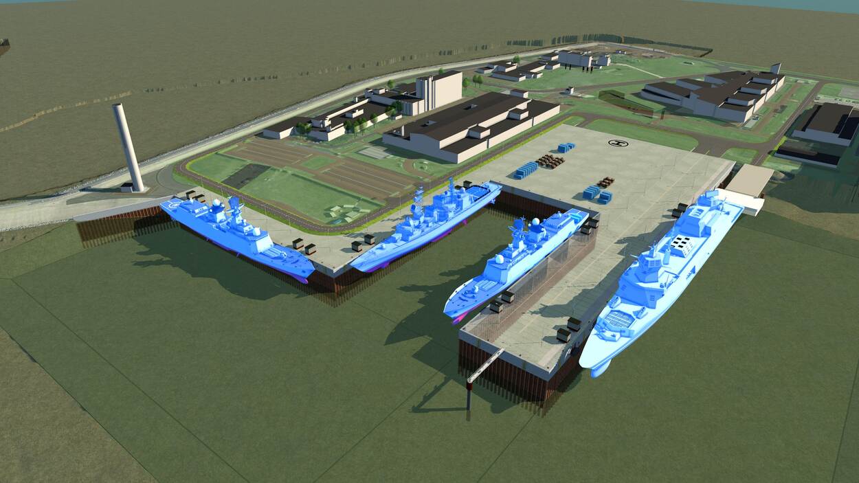 “De vervangende schepen zijn in de meeste gevallen groter; dat vraagt om een uitbreiding van de huidige haven”, schrijft Van der Maat. De staatssecretaris benoemt ook nadrukkelijk een veiligheidsaspect. “Het langs elkaar afmeren van schepen met zware munitie aan boord, zoals raketten en torpedo’s, wordt uit veiligheidsoverwegingen beperkt”, zegt Van der Maat.