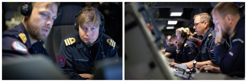 KLTZ Yvonne van Beusekom, commandant van de Tromp, toont zich ingenomen: “Beide missiles zijn succesvol afgevuurd; een goed resultaat en het gevolg van een grondige aanloop. Voor het luchtverdedigingsteam was het een lange voorbereiding en je merkt dat de spanning stijgt richting de lanceringen. Het vooroefenen is echt nodig om goed te doorgronden wat je aan het doen bent.” SMJRODOPS Frank van Mechelen, assistent-luchtverdedigingsofficier, legt vanuit zijn rol uit hoe een en ander in zijn werk gaat: “Je helpt de luchtverdedigingsofficier om het luchtplaatje zo concreet mogelijk te krijgen. Elk contact dat rondvliegt wordt geïdentificeerd als vriend of vijand. Is het een vijand, dan zetten we hem in een engagement list, wijzen we een wapen toe en kijken we naar de beste manier om deze te bestrijden. Klopt het wat we zien en is de commandant happy, dan krijgt de weapon system controller ‘vuren vrij’ te horen en drukt deze op de knop. Gisteren ging er eerst een SM2 uit en daarna een ESSM. Een ander doel hebben we als leaker gemeld bij de Noren. Zij hebben het toen vanaf land aangevallen met NASAMS, een grondgebonden luchtverdedigingssysteem.”