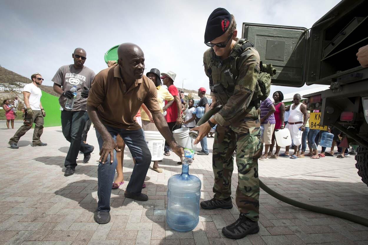 Orkaan Irma raasde in 2017 over het groene eiland en liet een spoor van vernieling achter. Hoewel inmiddels overal gebouwen uit de grond herrijzen, zijn ook ruïnes nog her en der zichtbaar. Die herinneren eraan hoe de natuur (opnieuw) kan toeslaan. “In zo’n geval kunnen we, op formeel verzoek van de lokale autoriteiten, zachte en/of harde militaire bijstand verlenen”, vertelt majoor der mariniers Arie Noordam, sinds 2020 commandant van het Mariniersdetachement. Hij sloot onlangs de tweejaarlijkse Hurricane Relief Exercise (HUREX) af, ter voorbereiding op het inmiddels geldende orkaanseizoen. “In de maanden met een vergroot risico draaien we de reguliere bedrijfsvoering, maar zitten we wel op een notice to move van 48 uur, waarin we volledig moeten kunnen opereren. We zijn altijd aanwezig, maar nu extra alert.”