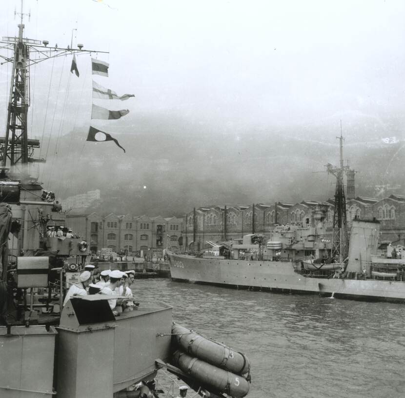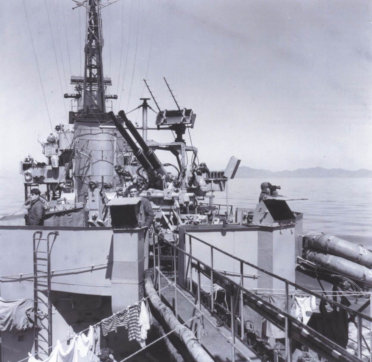 Marineschepen leverde Nederland overigens ook. In eerste instantie de torpedobootjagers Hr.Ms. Evertsen, Van Galen en Piet Hein, in de periode van 16 juli 1950 tot 18 april 1951. Van Gils: “Daarna volgden de fregatten Hr.Ms. Dubois, Johan Maurits en Van Zijl. De Piet Hein werd lid van de illustere Trainbuster Club, door in de nacht van 14 op 15 november 1952 met haar scheepskanons een bevoorradingstrein op de route langs de kust uit te schakelen.”