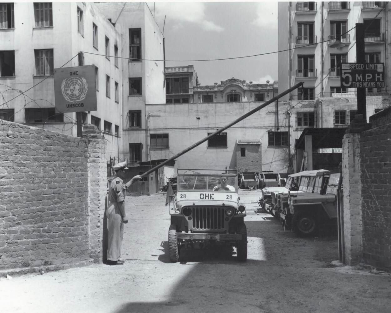 “VN-missies hebben allemaal United Nations (UN) in de naam”, steekt van Gils van wal. “Zo’n missie is dan gemandateerd door de Veiligheidsraad of de Algemene Vergadering van de VN. Hoewel de VN zelf 1948 aanhoudt als startjaar van de eerste missie, kwam het jaar ervoor al een beperkte inzet op gang. Toen werden internationale waarnemers in het kader van de United Nations Special Committee on the Balkans (UNSCOB) afgevaardigd naar Noord-Griekenland. Hier waren communistische guerrillastrijders gesteund door Albanië, Joegoslavië en Bulgarije binnendrongen, wat leidde tot een burgeroorlog (1946-1949). De VN-waarnemers bleven tot 1951 in het grensgebied. Ook enkele Nederlandse militairen maakten van 1948 tot 1951 deel uit van de missie. Nederland leverde tevens een permanente vertegenwoordiger in de persoon van oud-minister van Marine Jim de Booy."