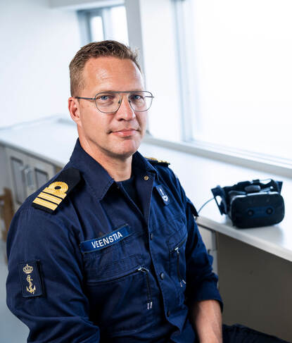Commandant kapitein-luitenant ter zee Stefjan Veenstra ziet nog meer ruimte voor verbetering. Tot zijn schrik sloeg er een deur in zijn gezicht toen het niet direct lukte de klink vast te grijpen. “Ik schrok ervan, zo realistisch is het. Deze puntjes op de 'i' komen in de laatste fase vast in orde. De grootste winst zit in de basiskennis die de bemanning nu al opdoet. Voor onze eerste vaartocht komen we beslagen ten ijs. Omdat we straks de weg al kennen, kunnen we direct beginnen met het opstellen van de bedrijfsvoering en procedures.” Volgens Veenstra krijgt VR in de toekomst een steeds grotere rol. “Straks kan een monteur van de Directie Materiële Instandhouding (DMI) met de bemanning meekijken. Met virtual en ook augmented reality (hierbij wordt, direct of indirect, een live-beeld van de werkelijkheid gedeeld waaraan de computer elementen kan toevoegen, red.) kunnen collega’s aan de wal een monteur in de machinekamer aan boord op afstand ondersteunen bij een storing."