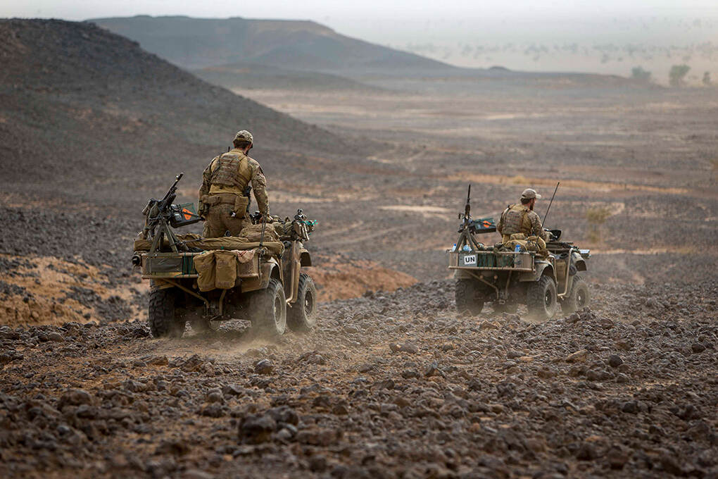 Door naar de meest recente grote VN-missie waarbij marinemilitairen betrokken waren: de United Nations Multidimensional Integrated Stabilization Mission Mali (MINUSMA). “Mali maakte tot 1960 deel uit van het Franse koloniale rijk. Vanaf de onafhankelijkheid in 1960 kwam de macht in handen van in het zuiden wonende (Afrikaanse) groeperingen. De Toearegs in Noord-Mali voelden zich vanaf het begin gemarginaliseerd. Tussen 1960 en 2012 kwamen ze 3 keer in opstand. Zij voorzagen doorgaans door middel van smokkel in hun bestaan, maar traden ook als huurlingen in dienst van de Libische dictator Moammar Khadaffi. Na diens dood in 2011 keerden veel Toearegs huiswaarts, waar zij in januari 2012 het onafhankelijke Azawad uitriepen. Zij en tal van radicaal islamitische militante groeperingen namen delen van Noord-Mali over. Toen hun oog ook op het zuiden viel, was voor met name Frankrijk de maat vol.” Onder de codenaam Operatie Serval verjoegen de Fransen en Afrikaanse eenheden van ECOWAS de Islamitische Coalitie in een paar weken tijd uit het noorden van Mali.