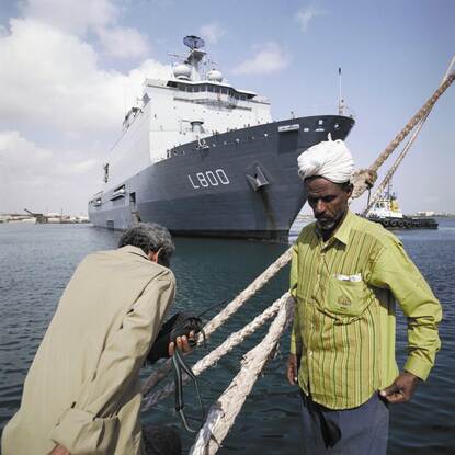 De volgende VN-missie waaraan de KM bijdroeg, was de United Nations Interim Force in Lebanon (UNIFIL). “Hoewel die missie al vanaf 1978 speelde, werd pas in 2006 een maritieme component toegevoegd”, legt Van Gils uit. De oorsprong van de onrust leidt ons overigens terug naar 1975, toen in Libanon een burgeroorlog uitbrak, als resultaat van interne conflicten. De moslimbevolking was ontevreden over de bevoorrechte positie van de christelijke elite. Die was juist weer beducht voor gewapende Palestijnse groeperingen, zoals de Palestijnse Bevrijdingsorganisatie PLO. In oktober 1976 moest een merendeels uit Syrische troepen bestaande Arabische Afschrikkingsmacht uitkomst brengen, maar buurland Israël wilde juist weer geen Syriërs in Zuid-Libanon zien. De PLO sprong vervolgens in het vacuüm en voerde vanuit het zuiden aanslagen uit op Israël. “Daarop trok dat land in 1978 Libanon in. De Libanese regering tekende protest aan bij de Veiligheidsraad. UNIFIL moest vervolgens toezien op de aftocht van de Israëlische troepen.”