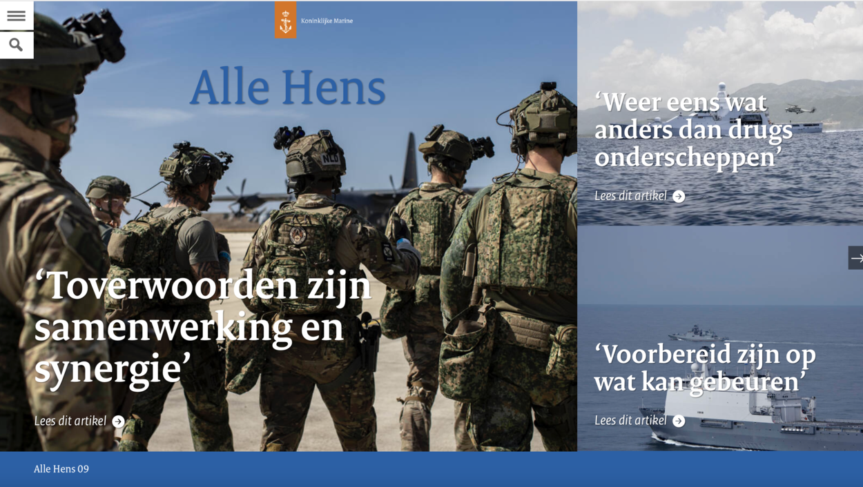 Het decembernummer van Alle Hens verschijnt niet online, maar op papier. Alle marinemensen en andere militairen plus burgermedewerkers die binnen CZSK zijn geplaatst, krijgen de uitgave automatisch toegezonden op het huisadres. Behoort u niet tot deze categorieën, maar wilt u deze editie toch ook graag ontvangen, dan kunt u uw naam en adresgegevens mailen naar: allehens@mindef.nl. (Uw adresgegevens worden eenmalig gebruikt voor de verzending van Alle Hens. Na verzending worden deze vernietigd.)