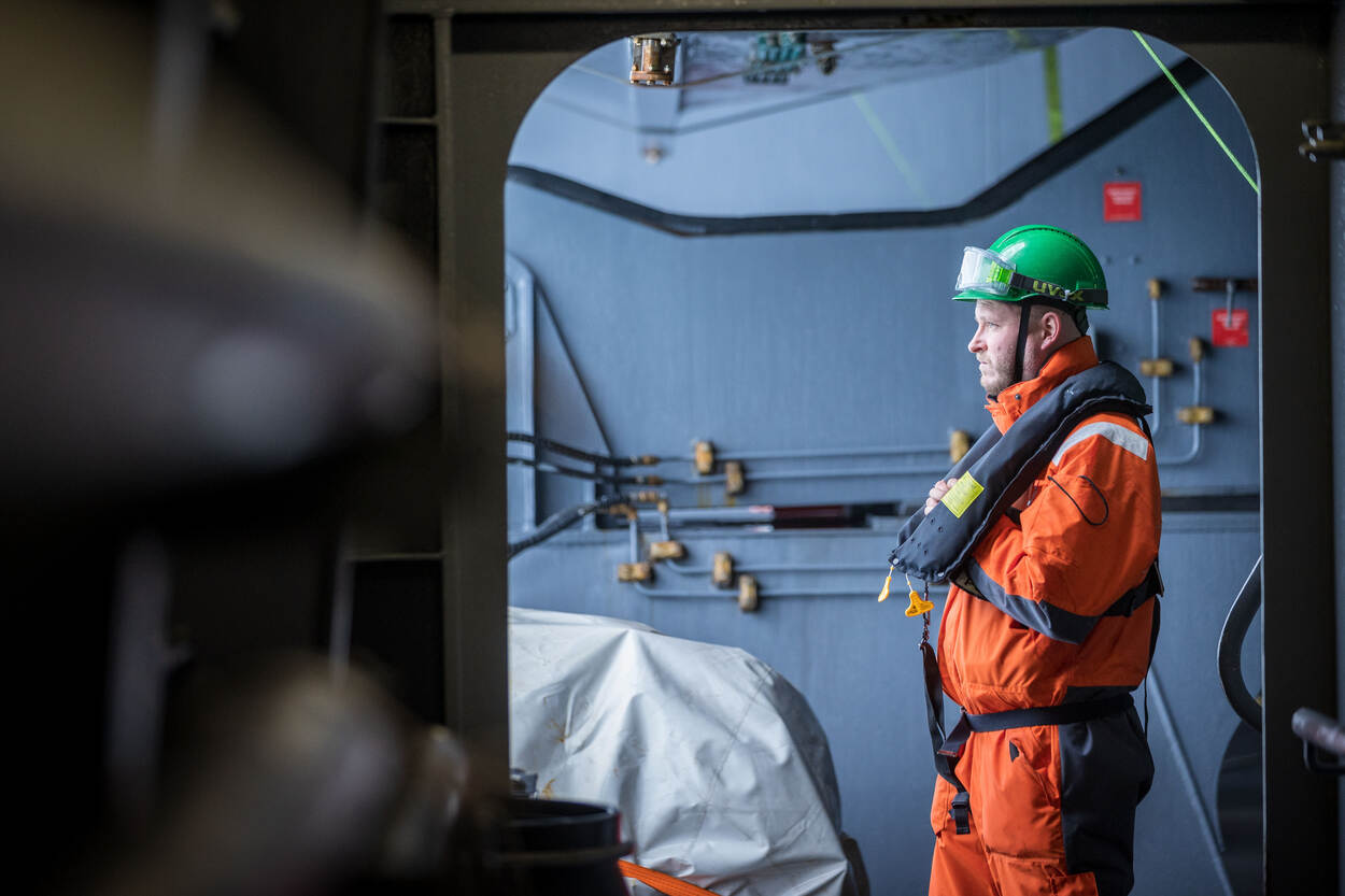 Dat het stormachtige weer het schip tijdens de eerste vaardag langzaam inhaalt en de zee steeds onstuimiger wordt, blijken voorbodes van wat komen gaat. Kort na de bevestiging dat de bemanning ‘ready’ is, wordt de rust aan boord onderbroken door het hevig trillende geluid van de Goalkeeper. Binnen enkele seconden verschiet het snelvuurkanon 140 stuks munitie. De toegesnelde collega’s volgen het brute geweld van achter de ramen, waarna de schietserie overgaat in hard gelach. “Het blijft indrukwekkend!”, geven zij toe. De nieuwe vaarweek is begonnen.