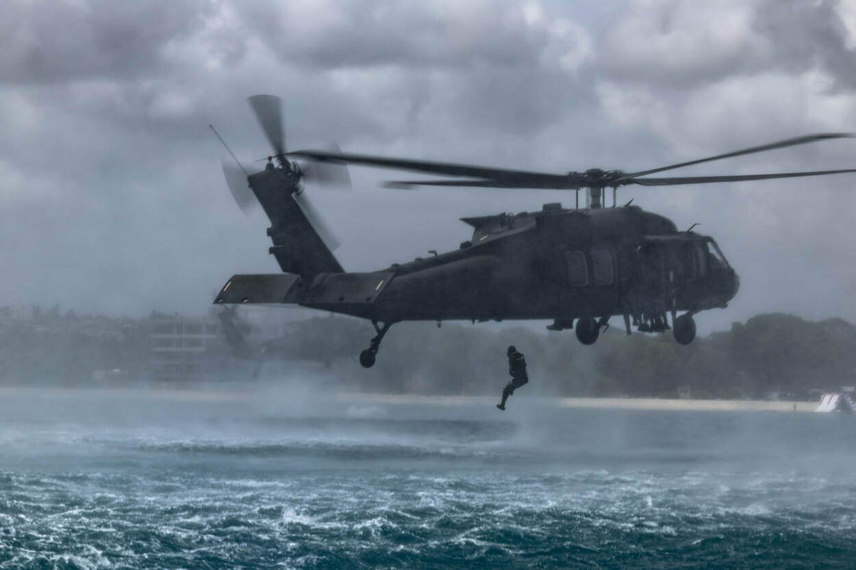 Met onder meer droppings uit Blackhawks, het enteren van schepen, patrouilles lopen en schietoefeningen, is Barbados 2 weken lang het toneel van Tradewinds. Een samenwerkingsoefening van zo’n 1.000 militairen uit 26 landen. Deze VS-geleide oefening spitst zich toe op humanitaire noodhulp, rampenbestrijding en het tegengaan van potentiële dreigingen in het Caribisch gebied. “Belangrijkste is dat je elkaar weet te vinden als het komt tot daadwerkelijke inzet.”