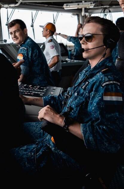 Operator zeebeeld en roerganger matroos 1 Operationele Dienst Jai (23): “Het was een heel diverse reis, zowel qua operaties, als qua havenbezoeken. In de Oost-Chinese Zee reageerde China provocerend op onze helikopter, die daar rondvloog voor beeldopbouw. Wij reageerden goed door kalm te blijven. In de Rode Zee stonden we op scherp omdat de dreiging hoog was. We werkten 5 weken lang zo’n 12 uur per dag, weliswaar in een afwachtende rol. Ik vond het fijn dat we – letterlijk – in hetzelfde schuitje zaten. We keken ook samen uit naar de havenbezoeken. Na het bezoek aan Griekenland zagen we in Azië bijna elk weekend een ander land. De ontvangsten waren heel divers, passend bij de cultuur van het land. In Japan werden we muzikaal verwelkomd door een band en de kranslegging op 4 mei in Singapore vond ik het meest bijzonder. Zulke dingen maakt deze reis uniek. Van vorige reizen weet ik dat indrukken pas landen als je thuis bent. Nu lijkt het allemaal nog vanzelfsprekend, maar straks zie ik de foto’s en kijk ik terug met een glimlach.”