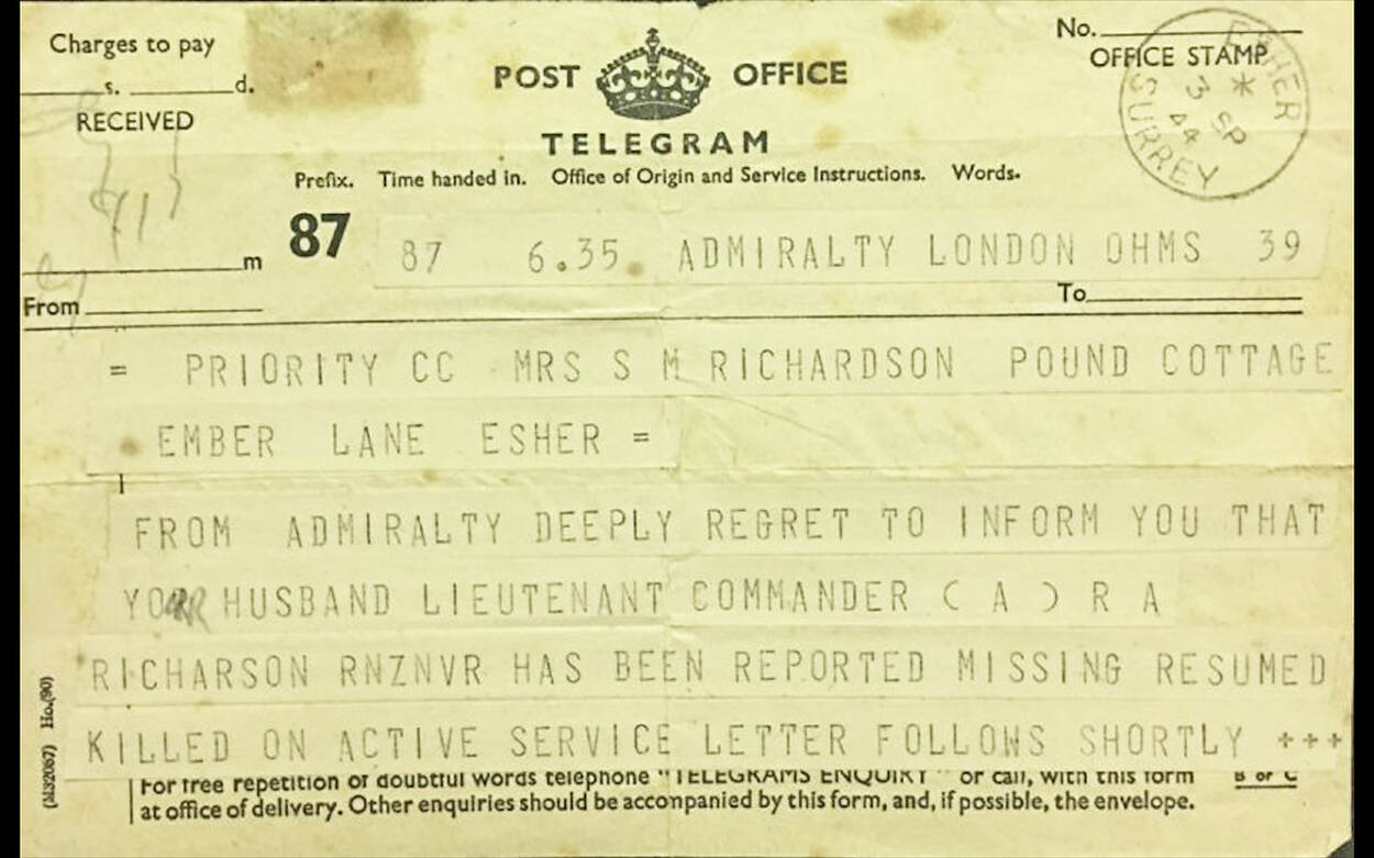 “Mijn oma heeft heel veel verteld over mijn opa”, meldt kapitein-luitenant ter zee (commander) Philip Richardson per videoverbinding vanaf het Kanaaleiland Jersey. “Ze had ook alles netjes gearchiveerd.” Het verhaal van opa Ron inspireerde Philip zelfs om dienst te nemen bij de Royal Navy. “Dat legde wel druk op me, eerlijk gezegd. Maar ik heb een geweldige tijd gehad als helikoptervlieger op de Westland Lynx en ben uiteindelijk ook squadron leader geworden.”