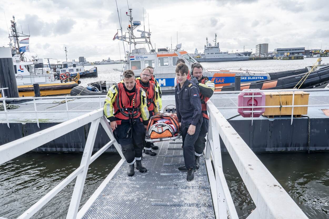 Luitenant ter zee 2OC Jeroen Lemmen, kustwachter Danyon Michalewski en de oud-Commandant Zeestrijdkrachten vice-admiraal b.d. Rob Kramer zijn 3 van een reeks vrijwilligers van KNRM-station Den Helder. “Maar we hebben in ons team ook een docent, een timmerman en nog meer vrijwilligers van buiten Defensie”, wijst Michalewki op de diversiteit in het team. Hij is opstapper bij de KNRM. Hij staat onder meer op het dek, maar kan indien nodig ook overstappen op een incidentschip, het schip in nood. In het dagelijkse leven is hij watch officer bij de Kustwacht. “Het komt dus voor dat ik beroepsmatig mijn eigen collega’s van de reddingsmaatschappij moet alarmeren”, toont hij een mooi dwarsverband.