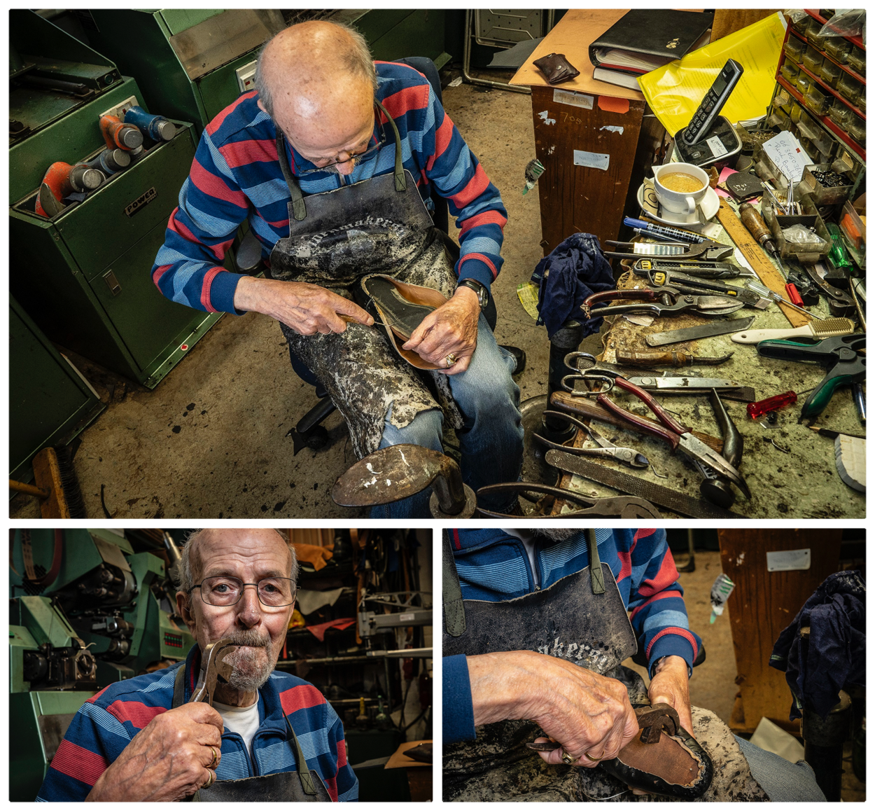 Om aan te geven dat de klanten van Cees hem eigenlijk niet kunnen missen: “Er komt hier binnenkort nog iemand langs met 3 paar nieuwe schoenen. De zolen ervan past vader aan in zijn Vierdaagse-systeem, zodat de eigenaar nog jaren vooruit kan op het wandelevenement.”