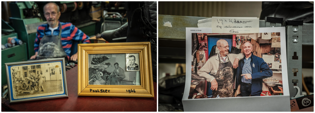 In de werkplaats van Rensen is het voor bezoekers, naar hun mening, moeilijk manoeuvreren. Dat valt volgens de vakman zelf inmiddels best mee. “Het begint al aardig leeg te worden”, merkt hij op. Toch staan, liggen, hangen en plakken er op veel plekken herinneringen. Zoals de schoenen van een man die er 36 keer de Vierdaagse op liep, een ouderwetse Friese doorloper (schaats), muntjes uit alle delen van de wereld – vastgeplakt op een toonbank – en veel foto’s van de schoenmaker met mensen die hem dierbaar zijn of waren.